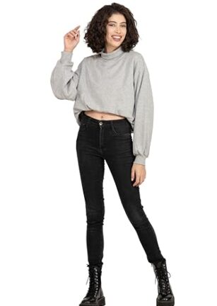 SELFYS Women’s Cotton Polyester Blended Fleece Sweatshirt, Full Sleeve Crop Top with High Neck for Winters, Loose Fit Sweatshirts for Womens, Regular Fit Winter Wear for Girls (Glacier Grey)