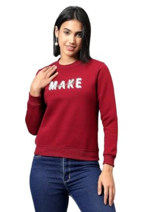 Cantabil Printed Maroon Full Sleeves Regular Fit Women Casual Sweatshirt | Casual Winter Sweatshirts for Women | Ladies Sweatshirts for Winter Wear (LSWS00063_Maroon_XL)