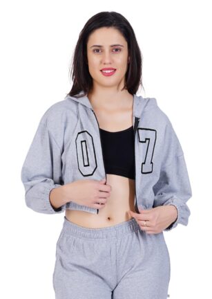 hotfits Women’s Casual Grey Crop Top Long Sleeve Zip Up Hooded Sweatshirt | Stylish Dresses | Night, Gym, Vacation Wear – XL