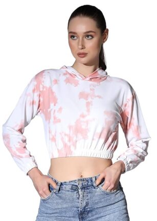 OM SAI LATEST CREATION Women’s Western Crop Top with Hoodie Neck & Long Sleeve || Hoodies with Loose Fit is Comfortable Wear for Sports | Gym | Workout | Yoga | Casual. (Small, Peach)