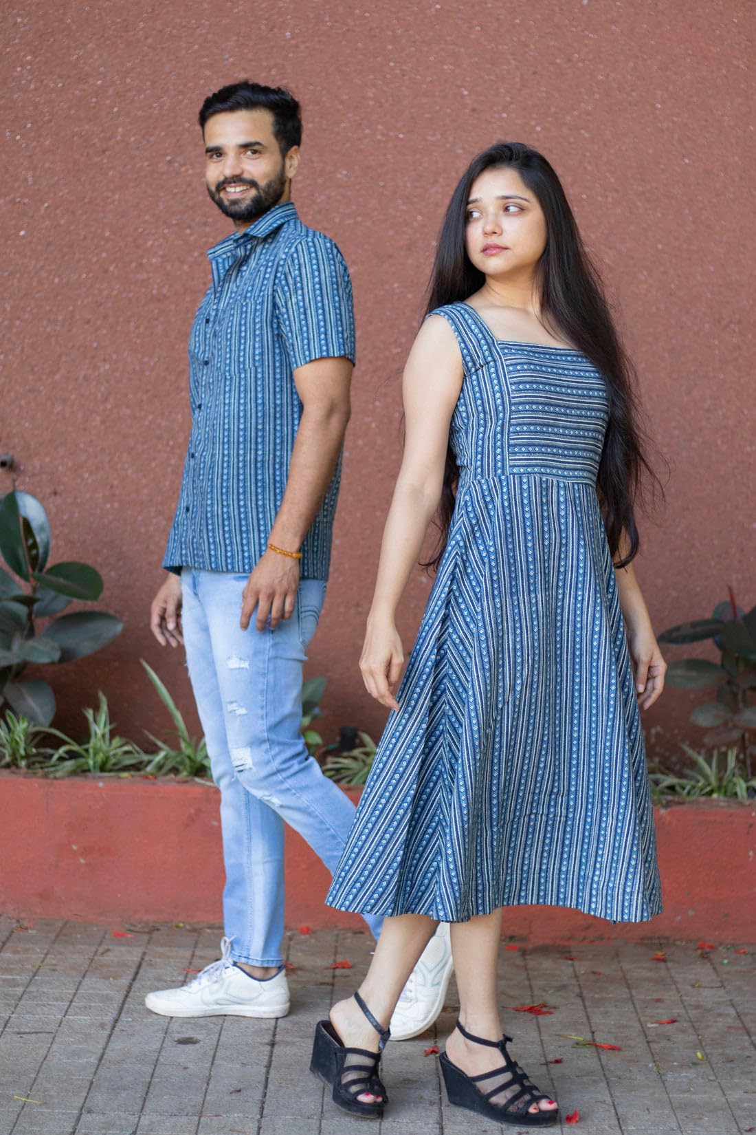 The KMISTRY Indigo Blue Star Stripe Couple Coord Set is designed for couples who enjoy stylish, coordinated fashion. Crafted from premium-quality cotton, this set features matching indigo blue outfits for both men and women, adorned with a trendy star stripe pattern. With a relaxed fit and breathable fabric, these co-ords offer day-long comfort, making them perfect for brunch dates, vacations, casual outings, and photoshoots.