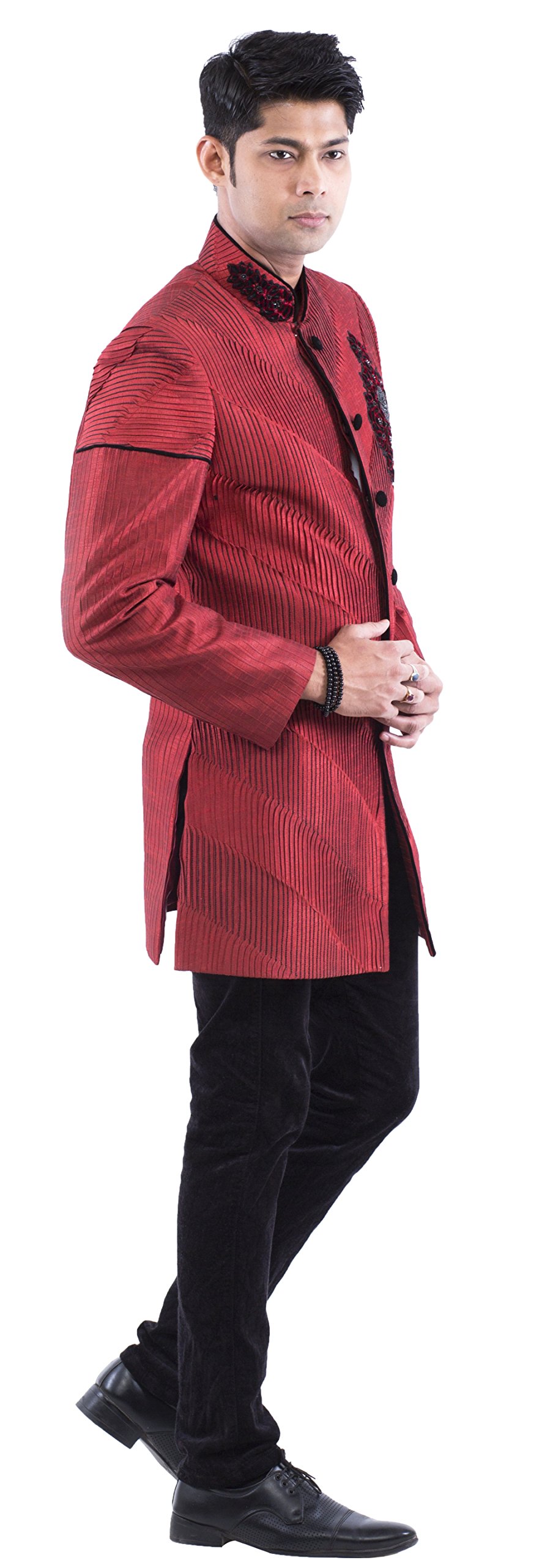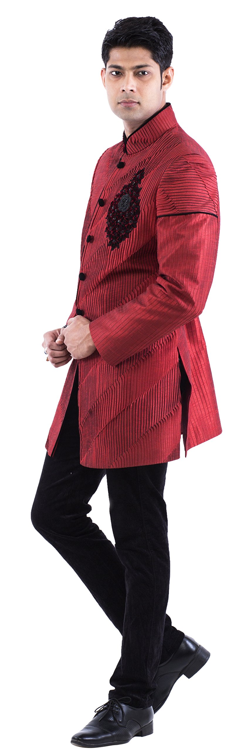 Raj Design Studio presents to you this unique ethnic set. Indo westerns are the flavour of the season and today’s boys like to mix tradition with modern. Our indo western sherwanis gives you the comfort of a kurta pyjama with looks of a sherwani. These are light weight heavy looking outfits made of silk. These easy to wear sets come with front open jacket. This outfit will sure catch eyes and will make your personality stand out among his friends and cousins. We at Raj Design Studio are striving everyday to bring to you the finest quality product for you. We are specialist in Kurta, Indowestern, Sherwani, suit, apparel with complete in-house manufacturing and quality check team. we have kurta pyjama, sherwani, indo-western, dhoti kurta, modi jackets to name a few.