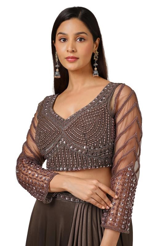 The Soch Women’s Brown Ready-to-Wear Saree brings together style, comfort, and convenience. Made from a lightweight nylon blend, it drapes beautifully and stays comfortable for long wear. Delicate bead embellishments add a subtle sparkle, making it ideal for festive evenings and celebrations.