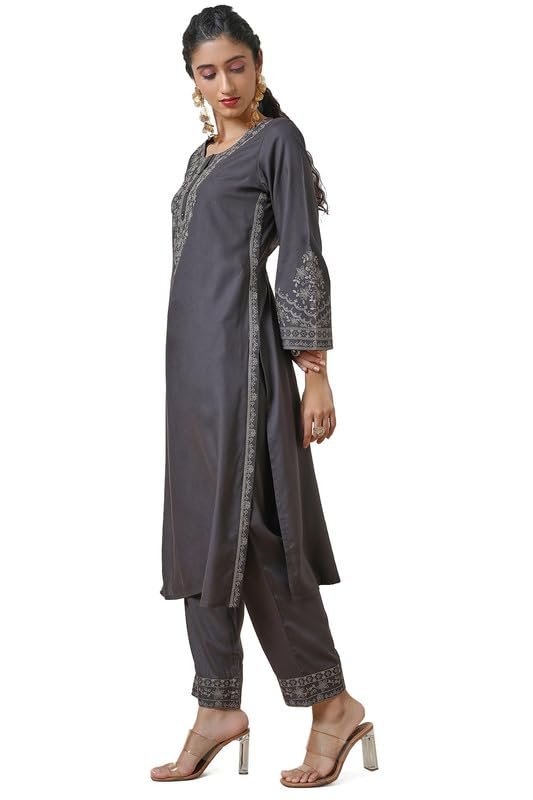 Elevate your ethnic wardrobe with the Soch Women’s Charcoal Floral Embroidered Rayon Kurta Set, a perfect blend of comfort and sophistication. Crafted from premium rayon fabric, this kurta set offers a soft, breathable, and lightweight feel, ideal for all-day wear.